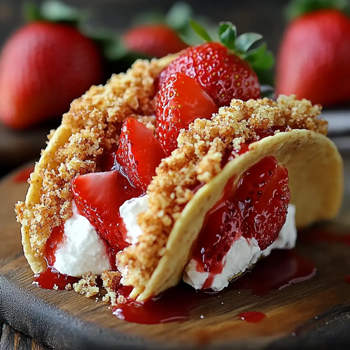 The beauty of these no-bake treats lies not only in their delightful taste but also in how quick and easy they are to prepare. Rather than the usual cake or pie, these cheesecake tacos break the mold, inviting everyone to indulge in something refreshingly different. Plus, I love that I can mix and match with various toppings, making every batch feel unique. Whether you’re craving a sweet ending to a dinner party or looking for a fun treat to make on a lazy afternoon, these Strawberry Crunch Cheesecake Tacos are the perfect solution to satisfy your sweet tooth.