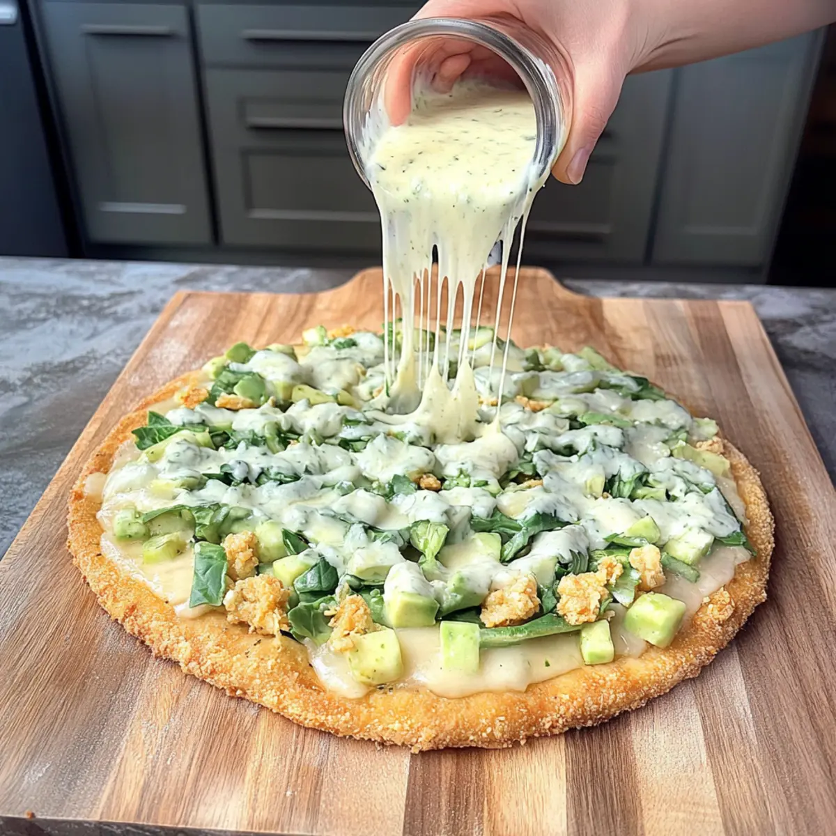 - Indulgent Viral Chicken Crust Caesar Salad Pizza Recipe
